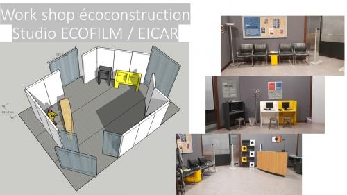 vendredi 1 décembre 2023https://youtube.com/shorts/c6wijf-_e18?feature=share 3e session d'écoconstruction de décor avec les étudiants en Mise en Scène de l'EICAR. Encadrement-Studio ECOFILM, matériaux-la Ressourcerie du Cinéma Ce sont 15 jours en studio pour un décor d'intérieur avec découverte et un décor extérieur avec extension numérique en appliquant une méthodologie bas carbone. En amont sont déterminés pendant deux jours d'écoconception les thématiques et ambiances. Un exercice complet qui vient à la suite de 3h d'intervention autour du plan d'action CNC en route pour une industrie durable du film. Une génération de professionnels.les pour qui la création passe par la novation que représente "l'écologisme". Loin des contraintes et des ressentis d'empêchements la formation avant son premier poste permet l'éclosion d'ambassadeurs/drices des recommandations ECOPROD/CNC-CST/AUDIENS/ECODECO Ciné/MAD et Studio Ecofilm...