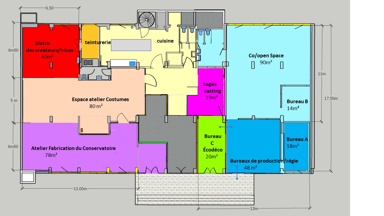 Des ateliers en rez-de-chaussée accessibles pour les livraisons et une série de bureaux de production et administration en étage avec des entrées indépendantes pour les différentes étapes de production (développement, préparation, lecture , casting, exécution de costumes, essais caméra, maquillage et coiffure, décors , effets spéciaux …) - Consultez nos tarifs